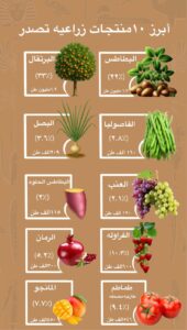 الإنفوجراف بيوضح أهم 10 منتجات بتتصدر المشهد في التصدير المصري، واللي أرقامها بتأكد إن مصر بقت لاعب رئيسي في الأسواق الزراعية الدولية:
